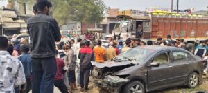 हाथरस 13 दिसंबर । अलीगढ़ रोड स्थित गांव रुहेरी में हुआ भीषण सड़क हादसा। अनियंत्रित कार ने एक के बाद एक तीन बाइक सवारों को रौंदा। हादसे में कई लोगों की हालत गंभीर। मौके पर पहुंची पुलिस ने संभाला मोर्चा। हाईवे पर लगा भयंकर जाम। सभी घायलों को जिला अस्पताल पहुंचाया। कई लोग सड़क किनारे स्थित नाले में गिरे। बाइक सवारों को रौंदने के बाद ट्रैक्टर ट्रॉली में पीछे से घुसी कार।