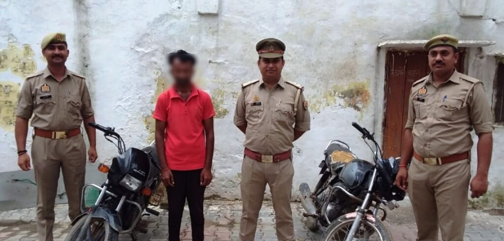 हाथरस 01 अगस्त । एंटी थेफ्ट टीम व थाना हाथरस गेट पुलिस द्वारा संयुक्त रूप से कार्रवाई करते हुए एक शातिर वाहन चोर को गिरफ्तार किया गया है। अभियुक्त के कब्जे से चोरी की दो मोटरसाइकिलें बरामद की गई हैं।गिरफ्तारी थाना हाथरस गेट क्षेत्र अंतर्गत नंगला भूरा रोड, प्रगतिपुरम कॉलोनी के पास से की गई। यह कार्यवाही पुलिस अधीक्षक चिरंजीव नाथ सिन्हा के निर्देशानुसार तथा प्रभारी निरीक्षक थाना हाथरस गेट व एंटी थेफ्ट टीम की निगरानी में की गई। गिरफ्तार अभियुक्त महेश उर्फ गब्बर पुत्र रामभरोसे निवासी कुण्डा बरबाना, थाना हाथरस जंक्शन जनपद हाथरस है। आरोपी शातिर किस्म का अपराधी है, जिसके विरुद्ध चोरी, धोखाधड़ी और गैंगस्टर एक्ट सहित कई गंभीर धाराओं में मुकदमे पंजीकृत हैं। बरामद वाहनों में एक हीरो स्प्लेंडर प्लस (बिना नंबर प्लेट) और एक हीरो एचएफ डीलक्स मोटरसाइकिल (नं. UP86 2265) शामिल हैं। ज्ञात हो कि 19 जुलाई 2025 को गौरव सिंह निवासी खेड़ा परसौली थाना चंदपा द्वारा थाना हाथरस गेट में मोटरसाइकिल चोरी की तहरीर दी गई थी, जिसके आधार पर मुकदमा दर्ज कर पुलिस द्वारा जांच शुरू की गई थी। गिरफ्तार अभियुक्त के विरुद्ध थाना हाथरस गेट पर भारतीय दंड संहिता की धारा 303(2), 317(2), 317(5) के अंतर्गत मुकदमा पंजीकृत कर आगे की विधिक कार्रवाई की जा रही है। गिरफ्तार करने वाली पुलिस टीम में प्रभारी निरीक्षक अरविंद राठी व टीम (थाना हाथरस गेट) तथा एंटी थेफ्ट टीम प्रभारी मुकेश कुमार व टीम शामिल रही।