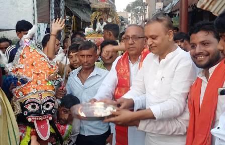 सिकंदराराऊ (हसायन) 01 अक्टूबर । कस्बा में बुधवार की शाम को शारदीय नवरात्रि के अंतिम दिवस पर महामाई भगवती के भक्तों द्वारा महामाई जय मॉ अम्बे की भव्य शोभायात्रा निकाली गई। शोभायात्रा का शुभारंभ जय मॉ अम्बे सेवा समिति के पदाधिकारियों ने महामाई मॉ अम्बेरानी की आरती उतारकर किया। शोभायात्रा हसायन के मुख्य बाजार स्थित प्राचीन मंदिर से शुरू होकर मोहल्ला किशन, मोहल्ला कछियान कलां, मोहल्ला दखल, शीशग्रान, पुरदिलनगर मार्ग, मोहल्ला जाटवान, मोहल्ला किला खेडा, माता पथवारी, माता शीतला देवी के मंदिर और श्यापुर वाली माता के मंदिर तक पहुँची और वहां सम्पन्न हुई। शोभायात्रा के दौरान भक्तों ने महामाई मॉ अम्बेरानी की आरती उतारकर पुष्प वर्षा की और जयकारे लगाकर माहौल को भक्तिमय बना दिया। शोभायात्रा देखने के लिए भक्तों की भारी भीड़ जुटी रही। इस अवसर पर अनमोल गुप्ता, रामगोपाल गुप्ता, विष्णु बघेल, योगेश बघेल, हरिकिशन, अंकित राना, अरुण माथुर, बंटी माहौर, रवि बघेल, केशव राजपूत सहित कई अन्य भक्तजन उपस्थित रहे।