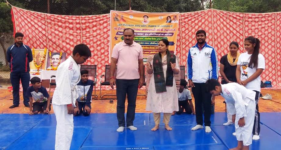 हाथरस 30 अक्टूबर । खेल निदेशालय के तत्वाधान में जिला खेल कार्यालय हाथरस द्वारा आज स्पोर्ट्स स्टेडियम में पंडित दीनदयाल उपाध्याय की जन्मशताब्दी के उपलक्ष्य में जूनियर आयु वर्ग के बालक खिलाड़ियों की जिला स्तरीय जूडो प्रतियोगिता का सफल आयोजन किया गया, जिसमें कुल 70 खिलाड़ियों ने विभिन्न 10 भार वर्गों में प्रतिभाग किया। प्रतियोगिता का शुभारम्भ जिला समाज कल्याण अधिकारी सरिता सिंह द्वारा पं. दीनदयाल उपाध्याय एवं जूडो के जनक प्रो. जिगारो कानो के चित्र पर माल्यार्पण कर तथा खिलाड़ियों से परिचय प्राप्त कर किया गया और उन्हें खेल भावना से खेलते हुए उत्कृष्ट प्रदर्शन के लिए प्रेरित किया गया। प्रतियोगिता में विजेताओं की पुरस्कार धनराशि उनके बैंक खातों में आहरित की जाएगी। प्रतियोगिता में आए मुख्य अतिथि का स्वागत उप क्रीड़ा अधिकारी काशी नरेश यादव सहित अंसार हुसैन, सुजी यादव व वर्षा रानी द्वारा माल्यार्पण कर फेटा पहनाकर किया गया। प्रतियोगिता को सफल बनाने में निर्णायक मंडल एवं आयोजन समिति के रूप में प्रदुम्न यादव (सचिव जिला जूडो संघ), पंकज, वर्षा रानी, अंसार हुसैन, सुजी यादव, सीमा सागर, मनोज राणा, आकाश यादव, पूजा राणा, स्मृता सिंह आदि का विशेष योगदान रहा, वहीं दीपा कश्यप, निशा शर्मा, विकास, विपिन चौधरी, कृष्ण कुमार आदि भी उपस्थित रहे।