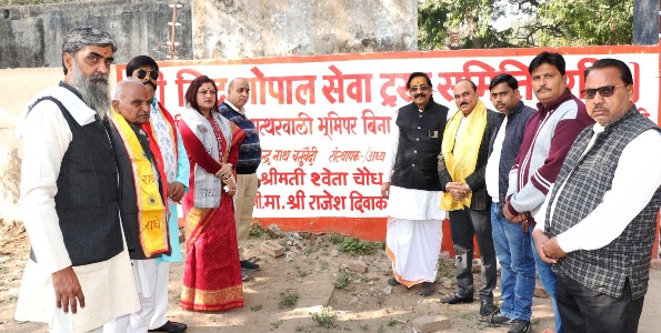 हाथरस 03 दिसंबर । पत्थर वाली (श्मशान भूमि) पर मृतकों के दाह-संस्कार हेतु बिना किसी लाभ-हानि के श्री सिद्ध गोपाल सेवा ट्रस्ट समिति द्वारा उपलब्ध कराई जाने वाली लकड़ी, उपले आदि सामग्री को सुरक्षित रखने के उद्देश्य से प्रस्तावित हॉल के निर्माण कार्य का भूमि पूजन आज विधिवत सम्पन्न हुआ। नगर पालिकाध्यक्ष श्वेता चौधरी तथा पूर्व सांसद राजेश दिवाकर ने वैदिक मंत्रोच्चार के बीच भूमि पूजन कर निर्माण कार्य का शुभारंभ किया। इस हॉल के निर्माण हेतु आवश्यक भूमि नगर पालिका परिषद द्वारा समिति को उपलब्ध कराई गई है। नगर पालिका अध्यक्ष श्वेता चौधरी ने कहा कि समिति द्वारा जनसेवा का यह महत्वपूर्ण कार्य सराहनीय है। इससे अंतिम संस्कार से जुड़े कार्यों में पारदर्शिता और सुविधा में वृद्धि होगी। उन्होंने समिति के पदाधिकारियों एवं सदस्यों के प्रति आभार व्यक्त किया। कार्यक्रम में समिति के संस्थापक/अध्यक्ष पं. सुरेंद्रनाथ चतुर्वेदी, राघवेंद्र सिकरवार, ठा. जोगिंदर सिंह, अरुण गोयल, कुलदीप शर्मा, रघुवीर शरण शर्मा, दीपक पाठक सहित कई गणमान्य नागरिक उपस्थित रहे।