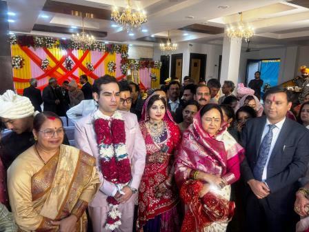 हाथरस 09 दिसम्बर । गाजियाबाद स्थित वेदांत फार्महाउस में आज राजनीति और अध्यात्म का अनूठा संगम देखने को मिला। आज विख्यात युवा कथावाचक निधि सारस्वत और पूर्व ऊर्जा मंत्री रामवीर उपाध्याय के पुत्र चिराग उपाध्याय का विवाह रीति-रिवाज से सम्पन्न होगा । इस भव्य समारोह में राजनीति और अध्यात्म के कई प्रमुख हस्तियां शामिल होंगी । निधि सारस्वत, अलीगढ़ के सासनी गेट की रहने वाली, अपनी मधुर वाणी और राधा-कृष्ण भक्ति के लिए प्रसिद्ध हैं और उनके भजन करोड़ों लोगों द्वारा सुने जा चुके हैं। उन्हें यूके की संसद ने अंतरराष्ट्रीय भगवद्गीता विदुषी सम्मान से नवाजा है, वहीं लंदन के मेयर और भारत सरकार ने भी उन्हें कई पुरस्कार दिए हैं। दूसरी ओर चिराग उपाध्याय को राजनीतिक विरासत मिली है। उनके पिता रामवीर उपाध्याय बसपा सरकार में ऊर्जा मंत्री रहे और मां सीमा उपाध्याय फतेहपुर सीकरी से सांसद रह चुकी हैं तथा वर्तमान में हाथरस की जिलापंचायत अध्यक्ष हैं। चिराग अपने परिवार की राजनीतिक विरासत को आगे बढ़ाने की जिम्मेदारी संभाल रहे हैं। इस शादी को राजनीतिक गलियारों में “दो शक्तिशाली धाराओं का संगम” बताया जा रहा है, जिसमें आध्यात्मिक प्रभाव और राजनीतिक पकड़ का मेल वेस्ट यूपी की सियासत में नए समीकरण की संभावना जताता है। शादी का कार्ड सोशल मीडिया पर काफी चर्चा में रहा। पारिवारिक सूत्रों के अनुसार, 11 दिसंबर को निधि पहली बार अपने सास-ससुर के साथ पैतृक गांव बामौली में गृह-प्रवेश करेंगी और इसके बाद जल्द ही रिसेप्शन का आयोजन भी किया जाएगा।