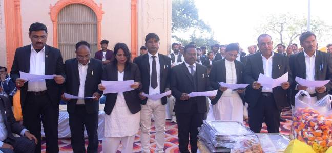 शपथ ग्रहण समारोह में संस्कृत विद्यालय के बच्चों द्वारा वेदों के उच्चारण और कविता पाठ प्रस्तुत किया गया। चुनाव संचालन समिति द्वारा सभी नवनिर्वाचित पदाधिकारियों को प्रमाणपत्र प्रदान किए गए। इसके अलावा अध्यक्ष दिनेश बंसल, महासचिव विनोद कुमार शर्मा और अन्य नवनिर्वाचित कमेटी ने न्यायिक अधिकारियों को प्रतीक चिन्ह और दुपट्टा पहनाकर सम्मानित किया। कार्यक्रम के दौरान अधिवक्ताओं ने बार और बेंच के बीच सामंजस्य बनाए रखने पर जोर दिया। जनपद न्यायाधीश ने नवनिर्वाचित कमेटी और सभी अधिवक्ताओं को आश्वासन दिया कि अधिवक्ताओं के अधिकारों और समस्याओं के समाधान में न्यायिक अधिकारी पूर्ण सहयोग करेंगे। समारोह में शहर के सम्मानित सामाजिक और धार्मिक प्रतिनिधियों ने भी अध्यक्ष और महासचिव का प्रतीक चिन्ह और पटका पहनाकर भव्य स्वागत किया।
