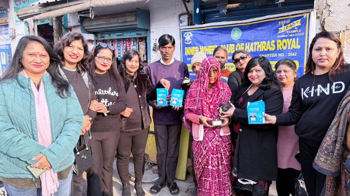 हाथरस 27 दिसंबर । हाथरस में इनरव्हील क्लब ऑफ हाथरस रॉयल की सदस्याओं ने आज जरूरतमंद लोगों के लिए चाय और पकोड़े वितरित किए। इसके साथ ही गरीब और असहाय लोगों को छोटी सोलर लाइट भी प्रदान की गई, ताकि उनके दैनिक जीवन में आसानी हो। इस अवसर पर क्लब की सदस्य राधा गावर, सीमा सबलोक, दीप्ति बूटीया, जूही बंसल, पूजा सिंह, पायल गुलाटी, लक्ष्मी अरोड़ा, दीप्ति अग्रवाल, रीना गुप्ता और रेनू अरोड़ा उपस्थित रहीं और उन्होंने स्वयं वितरण कार्य में भाग लिया। कार्यक्रम के माध्यम से क्लब ने सामाजिक सेवा और जरूरतमंदों की मदद के प्रति अपनी प्रतिबद्धता को प्रदर्शित किया।