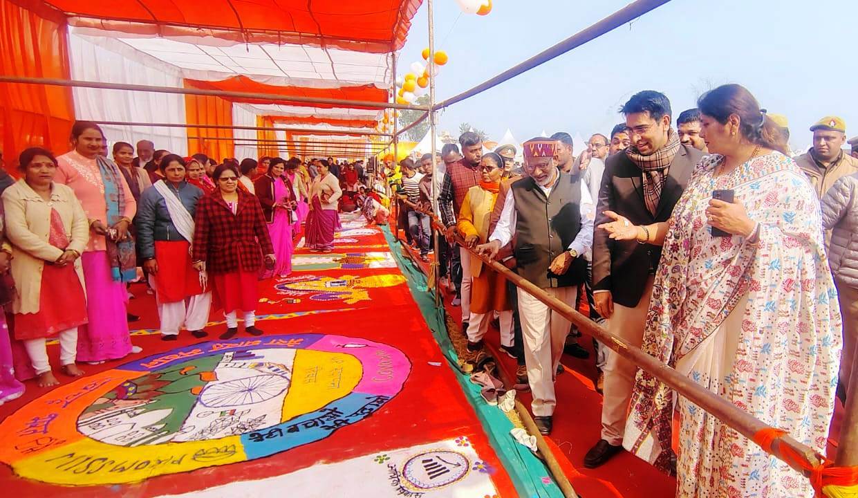 “उत्तर प्रदेश दिवस” के मौके पर श्री अन्न, प्रेरणा कैंटीन, आधार कार्ड/फैमिली आईडी बनाए जाने हेतु कैंप, आंगनबाड़ी कार्यकत्रियों और छात्राओं द्वारा रंगोली, चिकित्सा विभाग द्वारा आयुष्मान कार्ड बनाये जाने हेतु कैम्प, नेडा विभाग द्वारा सोलर लगाये जाने हेतु कैम्प लगाकर कार्यक्रमों का आयोजन किया गया। आयोजित कार्यक्रम के दौरान विभिन्न विभागों यथा पर्यटन विभाग, जिला उद्योग प्रोत्साहन तथा उद्यमिता विकास विभाग, जिला उद्योग विभाग, उत्तर प्रदेश राज्य ग्रामीण आजीविका मिशन, बाल विकास एवं पुष्टाहार विभाग, महिला कल्याण विभाग, समाज कल्याण विभाग, दिव्यांग पिछड़ा वर्ग विभाग, अल्पसंख्यक कल्याण विभाग, बेसिक शिक्षा विभाग, माध्यमिक शिक्षा विभाग, श्रम विभाग, विद्युत विभाग, विद्युत विभाग, मिशन शक्ति पुलिस विभाग, पशुपालन विभाग, कौशल विकास विभाग, अग्रणी बैंक, मत्स्य विभाग उद्यान विभाग, कृषि विभाग, द्वारा स्टाल/प्रदर्शनी का मा0 मुख्य अतिथि सहित उपस्थित मा0 जनप्रतिनिधिगणों ने अवलोकन किया और छात्राओं व आंगनबाड़ी कार्यकत्रियों द्वारा बनाई गई रंगोली की प्रशंसा की। श्रीअन्न से तैयार व्यजंनों का चखकर उनका स्वाद लिया। इस दौरान उन्होंने विभागीय अधिकारियों से पात्र लाभार्थियों को योजनाओं का लाभ पंक्ति के अंतिम छोर पर खड़े व्यक्ति तक पहुंचाने पर जोर दिया। विभागों द्वारा आमजनमानस को विभागीय योजनाओं के संबंध में विस्तार पूर्वक जानकारी मुहैया कराने के साथ ही पात्र लाभर्थियों का पंजीकरण कराया गया।