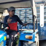 हाथरस में ओवरलोडेड ट्रैक्टर भीड़भाड़ वाले बाजार