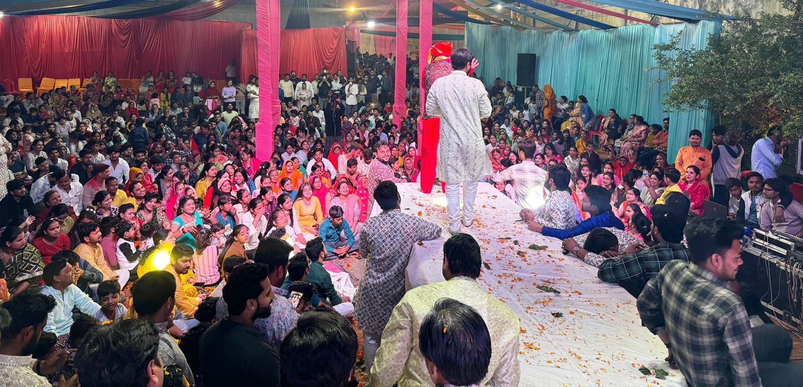 हाथरस में दो दिवसीय फाल्गुन महोत्सव के तहत भजन संध्या का हुआ आयोजन, भजन गायक नरेश सैनी ने बांधा समां