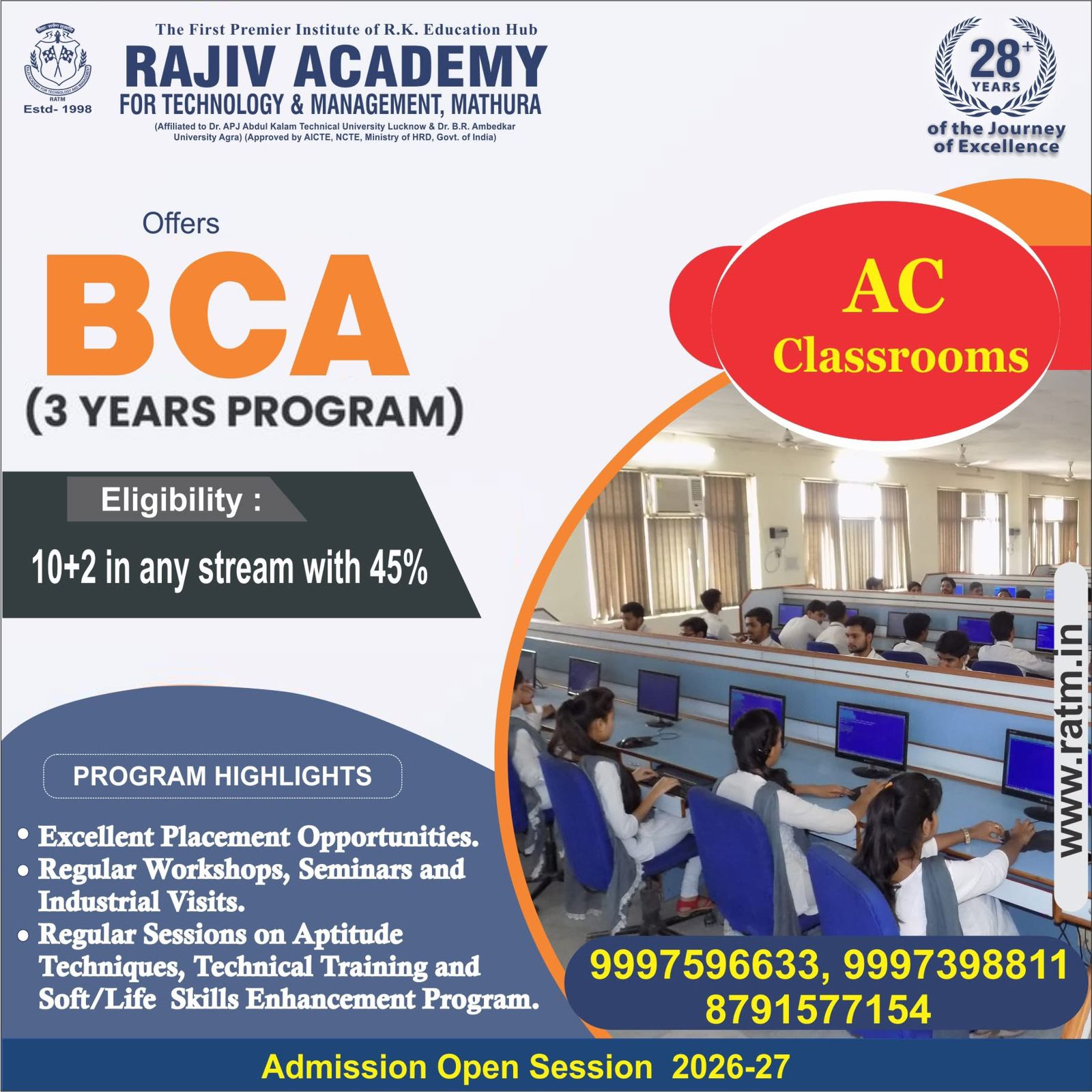 मथुरा 16 मार्च । आज के समय में मोबाइल ऐप डेवलपमेंट केवल कोडिंग तक सीमित नहीं रह गया है बल्कि इसमें आर्टिफिशियल इंटेलिजेंस (कृत्रिम बुद्धिमत्ता) आधारित फीचर्स का समावेश तेजी से बढ़ रहा है, जिससे एप्लिकेशन अधिक स्मार्ट और उपयोगकर्ता के अनुकूल बन रहे हैं। यह बातें राजीव एकेडमी फॉर टेक्नोलॉजी एंड मैनेजमेंट के एमसीए द्वितीय एवं चतुर्थ सेमेस्टर के विद्यार्थियों को “मोबाइल ऐप्स डेवलपमेंट पर एआई का प्रभाव” विषय पर आयोजित कार्यशाला में एमआरसीसी ट्रांसफॉर्मेशन प्रा.लि. के सीनियर फ्लटर डेवलपर राहुल ठाकुर ने बताईं। कार्यशाला में अतिथि वक्ता राहुल ठाकुर ने छात्र-छात्राओं को मोबाइल एप्लिकेशन डेवलपमेंट में कृत्रिम बुद्धिमत्ता (एआई) के बढ़ते उपयोग तथा उसके व्यावहारिक पहलुओं से अवगत कराया। उन्होंने बताया कि एआई की सहायता से मोबाइल एप्लिकेशन में पर्सनलाइजेशन, ऑटोमेशन और बेहतर यूजर एक्सपीरियंस प्रदान किया जा सकता है। उन्होंने उदाहरण देते हुए बताया कि आज कई मोबाइल ऐप्स उपयोगकर्ताओं की पसंद और व्यवहार का विश्लेषण कर उन्हें व्यक्तिगत सुझाव और सेवाएं प्रदान करते हैं। इससे उपयोगकर्ताओं की संतुष्टि बढ़ती है और एप्लिकेशन की उपयोगिता भी अधिक प्रभावी हो जाती है।