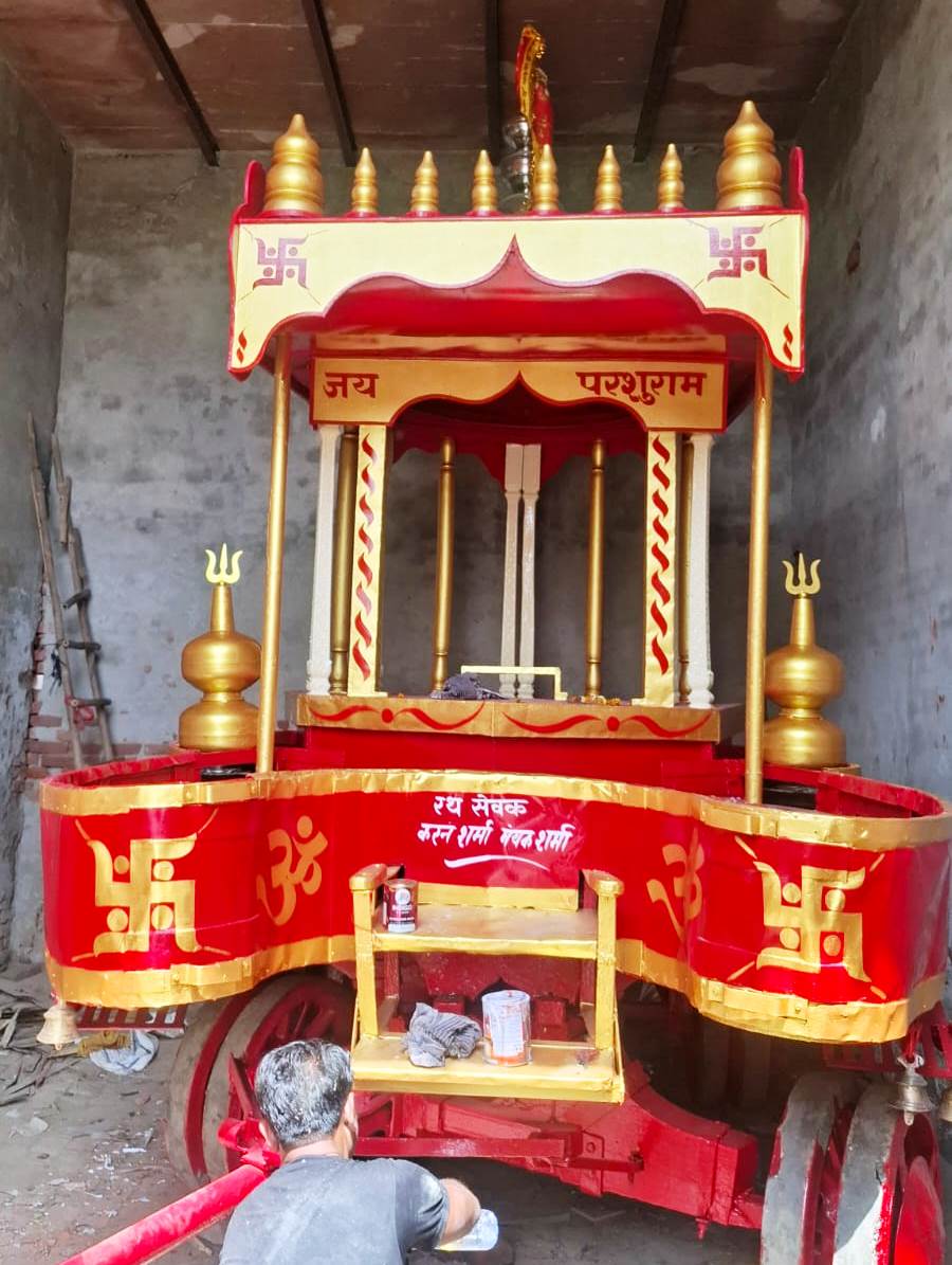 शोभा यात्रा के अध्यक्ष पं. योगेन्द्र शर्मा और महासचिव जय शर्मा ने सामूहिक रूप से मंत्रोच्चारण के बीच रथ पर ध्वज का आरोहण किया। भगवान परशुराम की आरती के पश्चात सभी उपस्थित जनसमूह को प्रसाद वितरित किया गया। आयोजकों ने बताया कि इस वर्ष की शोभायात्रा को ऐतिहासिक स्वरूप देने के लिए विशेष तैयारियां की गई हैं। इस अवसर पर पूर्व अध्यक्ष हरीशंकर शर्मा, ऋषि कौशिक, डॉ. जितेन्द्र स्वरूप फौजी, बृज मोहन शर्मा, पं. उदयवीर शर्मा, अविनाश चंद्र पचौरी, संजीव उपाध्याय, करन शर्मा, राजेंद्र नाथ चतुर्वेदी, विशाल सारस्वत, डॉ. विकास शर्मा, प्रशांत शर्मा, संजय शर्मा (BBCN), मयंक शर्मा, तरुण शर्मा, उदित शर्मा, गौरव शर्मा सहित बड़ी संख्या में विप्र बंधु उपस्थित रहे।
