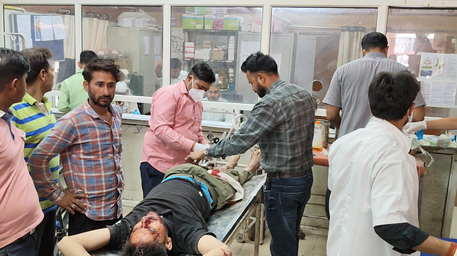 हाथरस 06 अप्रैल । कोतवाली हाथरस गेट क्षेत्र के जयपुर बरेली हाईवे पर तेज रफ्तार कार ने बाइक सवार दो युवकों को टक्कर मार दीl हादसे के बाद मौके पर स्थानीय लोगों की भीड़ लग गईl टक्कर के बाद कार खड्ड में जाकर पलट गईl हादसे में बाइक सवार दो युवक घायल हो गएl घायलों को आनन फानन में 108 एंबुलेंस से जिला अस्पताल पहुंचाया गयाl यहां से उनको गंभीर हालत में अलीगढ़ रेफर कर दिया गयाl सोमवार की दोपहर को कोतवाली हाथरस गेट क्षेत्र के गांव नगला बिसैया निवासी 23 वर्षीय मोहित पुत्र टीकम सिंह अपने 20 वर्षीय भांजे लकी पुत्र कालू निवासी कलाई थाना हरदुआगंज अलीगढ़ को साथ लेकर हाथरस शहर से अपने गांव नगला बिसैया बाइक पर सवार हो लौट रहा थाl जैसे ही बाइक सवार मामा भांजे ने रोड क्रॉस करना चाहा तो मथुरा की ओर से आ रही कार ने उनकी बाइक में जोरदार टक्कर मार दीl जिससे दोनों बुरी तरह से घायल हो गएl हादसे के बाद मौके पर स्थानीय लोगों की भीड़ लग गईl घायलों के परिवार के लोग भी घटना स्थल पर पहुंच गएl एक घायल को परिजन निजी वाहन से जिला अस्पताल लेकर पहुंचे तो वही दूसरे घायल को 108 एंबुलेंस से अचेत हालात में जिला अस्पताल पहुंचाया गयाl यहां पर दोनों घायलों की हालत नाजुक होने पर उनको गंभीर हालत में अलीगढ़ रेफर कर दियाl हादसे की सूचना मिलने पर घायलों के परिवार व गांव के लोगों की जिला अस्पताल परिसर में भीड़ लग गईl दोनों की स्थिति काफी नाजुक बताई गई हैl