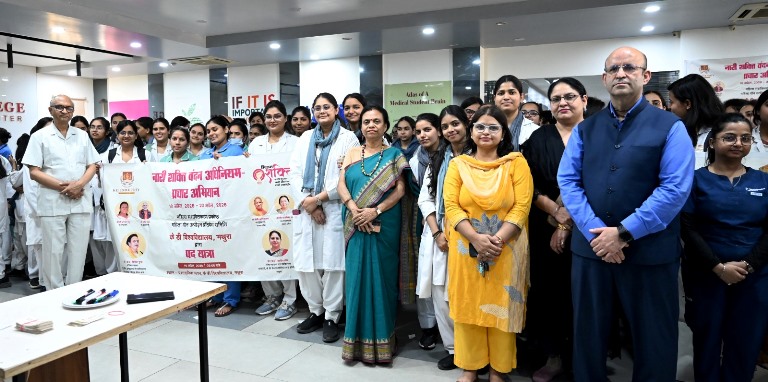 हाथरस 17 अप्रैल । श्री रामेश्वरदास अग्रवाल कन्या महाविद्यालय में शुक्रवार को “नारी शक्ति वंदन अधिनियम 2023” के समर्थन एवं जागरूकता हेतु विभिन्न कार्यक्रमों का सफल आयोजन किया गया। यह कार्यक्रम महाविद्यालय की प्राचार्या प्रो. सुषमा यादव के मार्गदर्शन एवं नोडल प्रभारी डॉ. अंजु आर्य के निर्देशन में संपन्न हुआ। कार्यक्रम का मुख्य आकर्षण छात्राओं द्वारा प्रस्तुत किया गया नुक्कड़ नाटक रहा। “महिलाओं के राजनीतिक सशक्तिकरण” विषय पर आधारित इस नाटक में 6 छात्राओं ने अपनी ओजस्वी प्रस्तुति से यह संदेश दिया कि देश के विकास में महिलाओं की राजनीतिक भागीदारी अनिवार्य है। इस दौरान 46 छात्राएं उपस्थित रहीं। वहीं, काव्य पाठ प्रतियोगिता में बी.ए. चतुर्थ सेमेस्टर की छात्रा अंजली शर्मा ने “सशक्त नारी, सशक्त देश” विषय पर भावपूर्ण कविता प्रस्तुत कर सभी का मन मोह लिया। काव्य पाठ के दौरान 52 छात्राओं की गरिमामयी उपस्थिति रही। नारी शक्ति वंदन – लोकतंत्र में अभिनंदन के नारों के साथ महाविद्यालय की छात्राओं ने एक विशाल पदयात्रा रैली निकाली। इस रैली का उद्देश्य समाज को नारी शक्ति वंदन अधिनियम के प्रति जागरूक करना और राजनीति में महिलाओं की ‘आधी आबादी’ की भागीदारी सुनिश्चित करना था। रैली में कुल 184 छात्राओं ने उत्साहपूर्वक प्रतिभाग किया। कार्यक्रम को सफल बनाने में डॉ. अमृता सिंह एवं डॉ. शशि का विशेष सहयोग रहा। प्राचार्या प्रो. सुषमा यादव ने छात्राओं को संबोधित करते हुए कहा कि इस अधिनियम से महिलाओं को नेतृत्व करने के नए अवसर प्राप्त होंगे, जो एक सुदृढ़ लोकतंत्र की पहचान है।