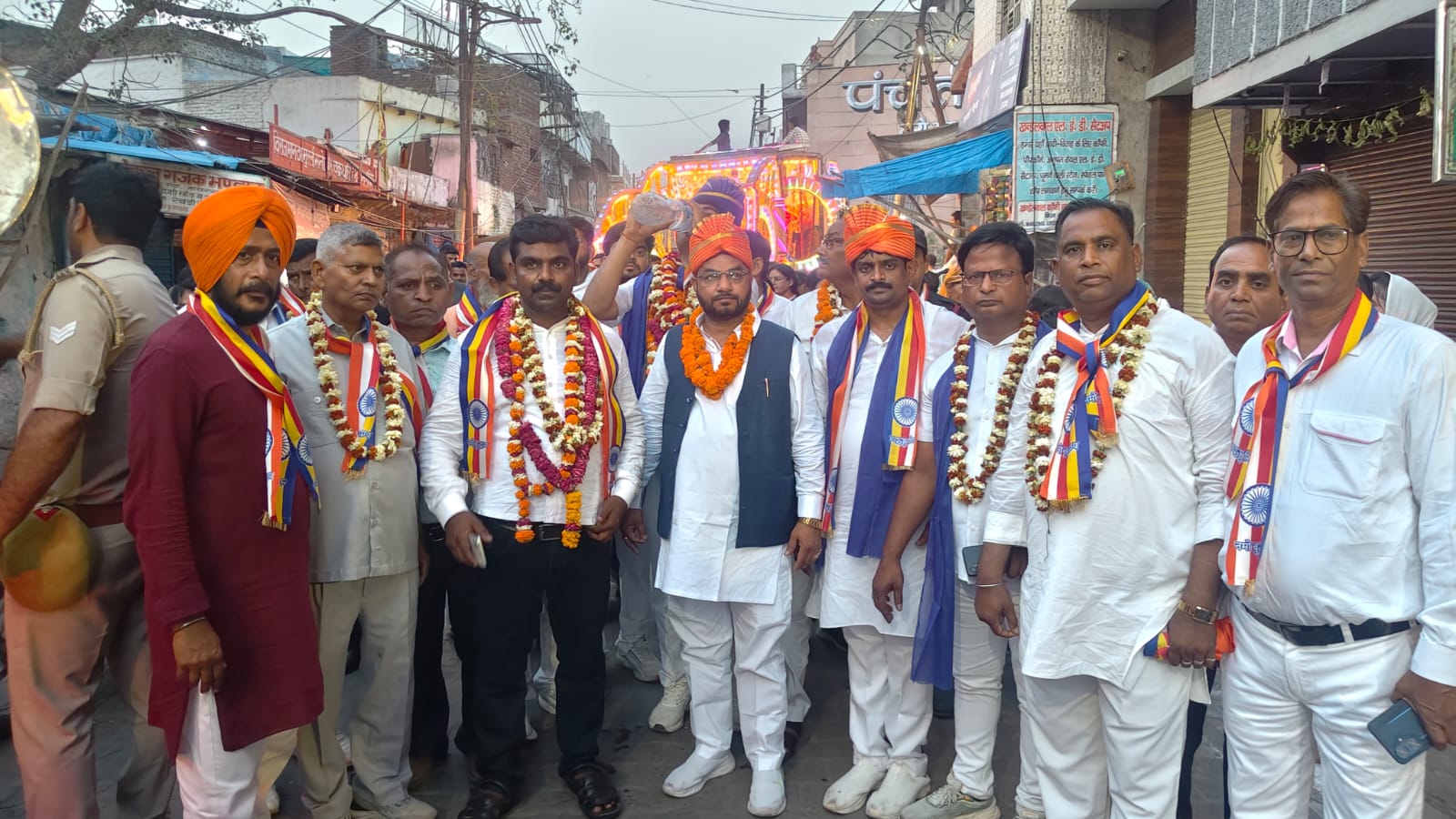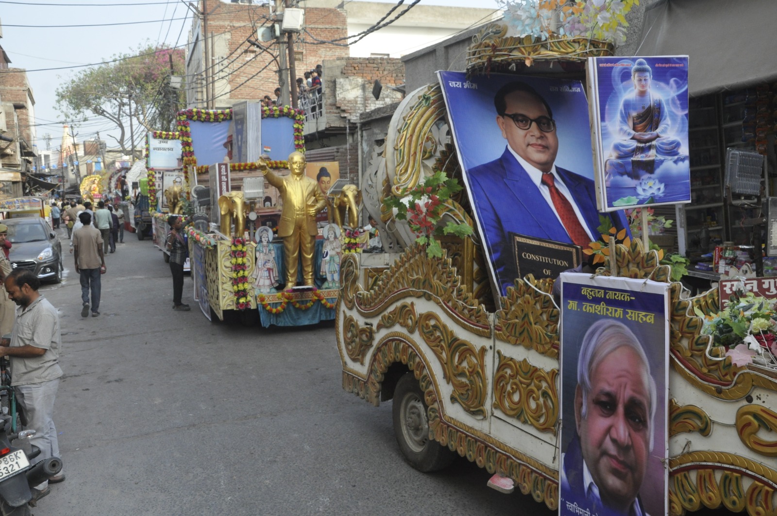 हाथरस 28 अप्रैल । नगर में संविधान निर्माता डॉ. भीमराव अंबेडकर की शोभायात्रा बड़े ही धूमधाम और हर्षोल्लास के साथ निकाली गई। कार्यक्रम का शुभारंभ संत आश्रम बगीची से बुद्ध वंदना और पंचशील ध्वज दिखाकर किया गया। आयोजन समिति के अध्यक्ष लोकेंद्र सिंह ने सभी मुख्य अतिथियों का माला पहनाकर और स्मृति चिन्ह भेंट कर स्वागत किया। यह भव्य शोभायात्रा नगर के प्रमुख मार्गों से होती हुई गांधी पार्क स्थित अंबेडकर पार्क पर जाकर संपन्न हुई, जहां मार्ग में जगह-जगह अनुयायियों और स्थानीय लोगों ने पुष्प वर्षा कर यात्रा का जोरदार स्वागत किया।