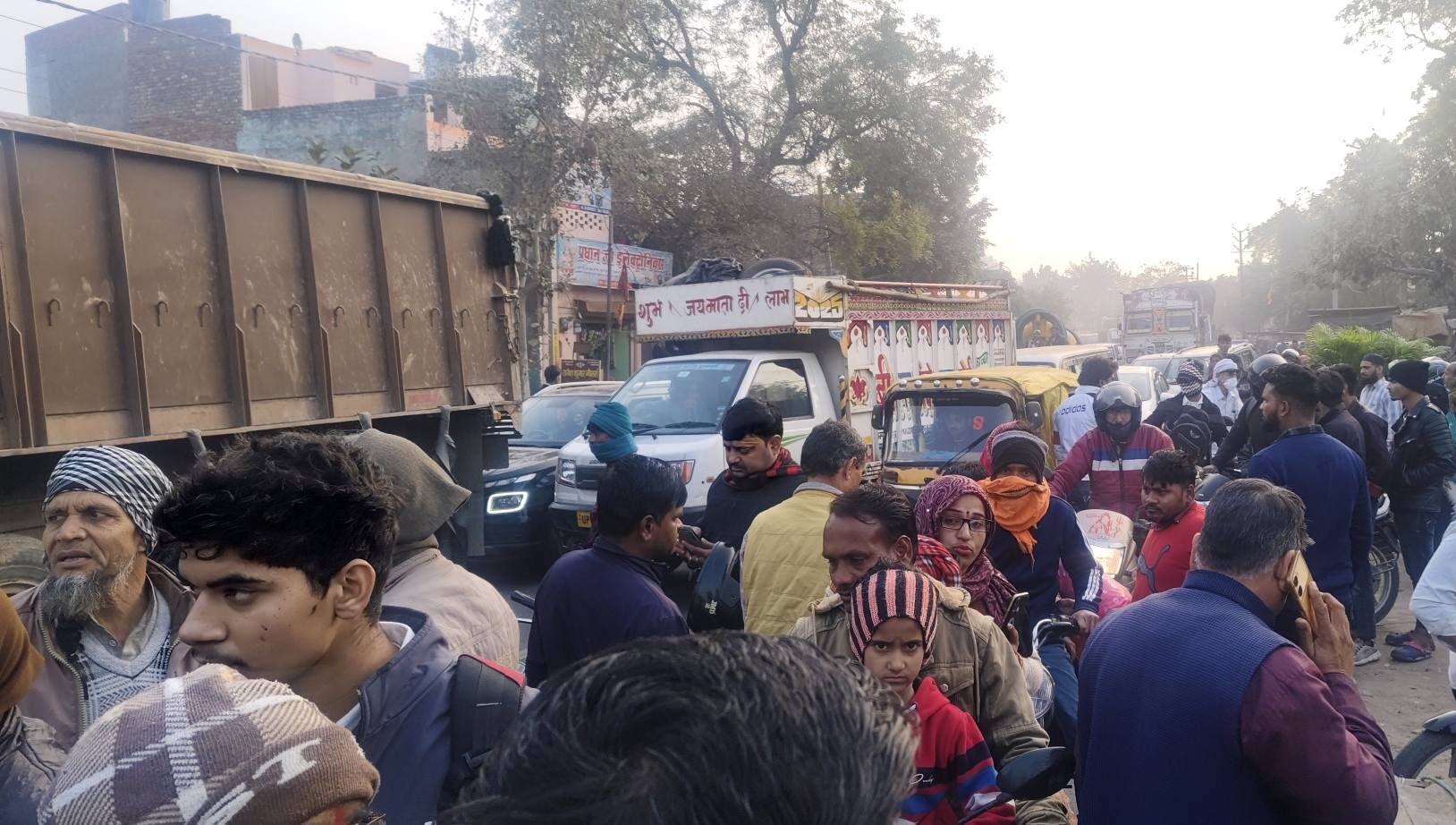 हाथरस 22 दिसंबर । आगरा-अलीगढ़ नेशनल हाईवे पर आज शाम करीब पांच बजे एक दर्दनाक सड़क हादसे में बाइक सवार युवक की मौत हो गई। यह घटना हाथरस गेट कोतवाली क्षेत्र के रुहेरी गांव में हुई। जानकारी के अनुसार, एक स्कूल बस ने बाइक को टक्कर मार दी, जिससे 30 वर्षीय विशाल कौशिक मौके पर ही गंभीर रूप से घायल हो गए और उनकी मौत हो गई। दुर्घटना के बाद बस चालक वाहन लेकर फरार हो गया। मृतक की पहचान सहपऊ कस्बे के मोहल्ला बजरिया निवासी विशाल कौशिक पुत्र विक्रम कौशिक के रूप में हुई है। विशाल अपनी बुआ के घर सासनी क्षेत्र के नगला ताल जा रहे थे। हादसे के बाद घटनास्थल पर भारी जाम लग गया, जिसे पुलिस ने पहुंचकर यातायात सुचारु कर दिया। पुलिस ने शव को कब्जे में लेकर पोस्टमार्टम के लिए भेज दिया। मृतक अविवाहित थे और पहले एक कंपनी में काम कर चुके थे, लेकिन वर्तमान में अपने घर पर ही काम कर रहे थे। प्रत्यक्षदर्शियों के अनुसार टक्कर इतनी जबरदस्त थी कि युवक का सिर बुरी तरह कुचल गया, जिससे उसकी घटनास्थल पर ही मृत्यु हो गई। घटना की जानकारी मिलने पर इलाका पुलिस मौके पर पहुंच गई। हादसे के बाद सड़क पर लंबा जाम लग गया और यातायात पूरी तरह बाधित हो गया। पुलिस ने एंबुलेंस से युवक के शव को पोस्टमार्टम हाउस भेजा और रोड पर यातायात को सुचारु कराया। करीब 1 घंटे की कड़ी में मशक्क्त के बाद शव की शिनाख्त हो सकी। हादसे की सूचना मिलने पर मृतक के परिवार में मातम छा गयाl परिवार के लोगों की पोस्टमार्टम हाउस पर भीड़ लग गई।