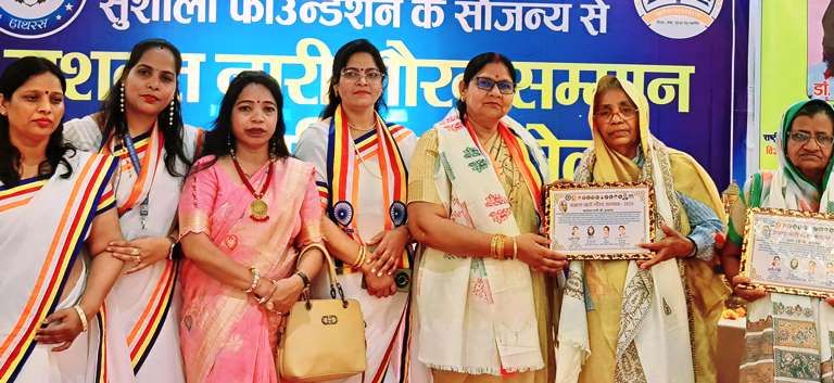 हाथरस 08 मार्च । अंतर्राष्ट्रीय महिला दिवस के उपलक्ष्य में ‘रॉयल भीम शेरनी संगठन’ और ‘सुशीला फाउंडेशन’ के संयुक्त तत्वाधान में लहरा रोड स्थित एक रिजॉर्ट में एक ‘राष्ट्रीय महिला सम्मेलन’ का आयोजन किया गया। इस भव्य कार्यक्रम में समाज के विभिन्न क्षेत्रों में जागरूकता और उत्थान का कार्य करने वाली 121 महिलाओं को ‘सशक्त नारी गौरव सम्मान 2026’ से अलंकृत किया गया। कार्यक्रम की अध्यक्षता सुशीला फाउंडेशन की अध्यक्ष सुशीला देवी ने की। रॉयल भीम शेरनी संगठन की अध्यक्ष सुषमा सिंह ने अपने संबोधन में कहा, “महिलाओं का सम्मान और उन्हें मिलने वाले समान अवसर ही एक समृद्ध और प्रगतिशील समाज की असली पहचान हैं।” उन्होंने महिलाओं के प्रति समाज की संवेदनशीलता को राष्ट्र निर्माण के लिए अनिवार्य बताया।