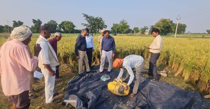 धान फसल की क्रॉप कटिंग प्रक्रिया मुख्य