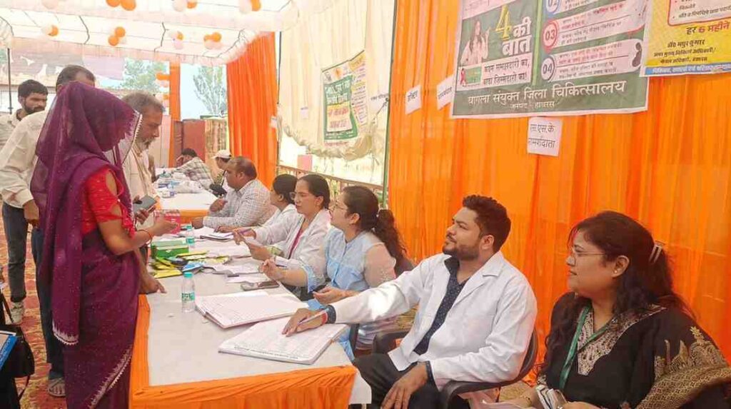 हाथरस 25 अक्टूबर । मुख्य चिकित्सा अधीक्षक बागला संयुक्त जिला चिकित्सालय एवं उत्तर प्रदेश राज्य एड्स नियंत्रण सोसाइटी, लखनऊ के निर्देशन में शनिवार को मंडी समिति परिषद, अलीगढ़ रोड में संपूर्ण सुरक्षा केंद्र, ज़िला चिकित्सालय-हाथरस की प्रभारी शालिनी कटिहार व उनकी टीम द्वारा मेगा हेल्थ कैम्प का आयोजन किया गया। यह स्वास्थ्य शिविर सुबह 9 बजे से देर शाम तक चला, जिसमें बड़ी संख्या में लोगों ने भाग लिया । कैंप का शुभारंभ मुख्य चिकित्सा अधिकारी डॉ. मंजीत सिंह, मुख्य चिकित्सा अधीक्षक डॉ. सूर्य प्रकाश एवं जिला क्षय रोग अधिकारी डॉ. विजय आनंद ने संयुक्त रूप से दीप प्रज्वलित कर एवं फीता काटकर किया। शिविर में नगर एवं आसपास के ग्रामीण क्षेत्रों के लोगों के स्वास्थ्य परीक्षण हेतु जिला अस्पताल के चिकित्सक डॉ. कुशा गावर, डॉ. अंकित, डॉ. सतीश, फार्मासिस्ट, प्रबंधक शालिनी कटिहार, काउंसलर महिमा श्रीवास्तव, संजय यादव, चंद्रकांता, लक्ष्मी, कल्पना मिश्रा, प्रवीण कौशिक, एसटीआई काउंसलर रजनी शर्मा, एलटी दिलीप शर्मा, मुकेश, आसिफ, एसएसके ओआरडब्ल्यू कमर जहां एवं लक्ष्मी शर्मा सहित स्वास्थ्य विभाग की पूरी टीम मौजूद रही । शिविर में डॉक्टरों और काउंसलरों द्वारा उपस्थित लोगों को टीबी, एचआईवी, हेपेटाइटिस और सिफिलिस जैसे रोगों के लक्षण, बचाव एवं उपचार के बारे में विस्तृत जानकारी दी गई। इस दौरान जोखिम वाले लोगों की स्क्रीनिंग पर विशेष ध्यान दिया गया। मेगा हेल्थ कैम्प में बीपी, शुगर, हेपेटाइटिस, टीबी और एचआईवी जैसी जांचें की गईं। कुल मिलाकर आठ सौ से अधिक लोगों का सामान्य स्वास्थ्य परीक्षण किया गया और आवश्यकतानुसार दवाइयां वितरित की गईं । इस अवसर पर नगर पंचायत के सभी आशा कार्यकर्ता, आंगनबाड़ी कर्मी, एएनएम और स्थानीय नागरिक बड़ी संख्या में उपस्थित रहे ।