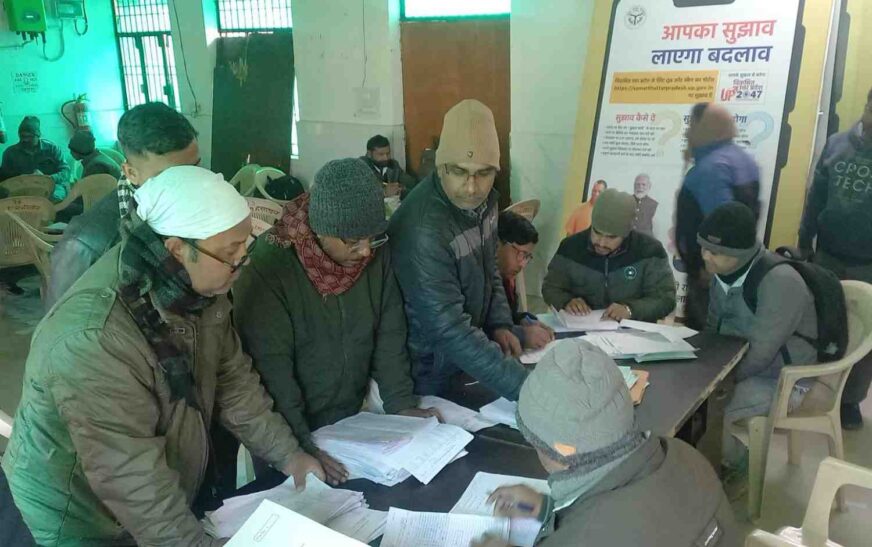 सिकंदराराऊ (हसायन) 05 जनवरी | विकासखंड कार्यालय के परिसर में स्थापित सहायक विकास अधिकारी पंचायत(एडीओ पंचायत)के कार्यालय सभागार परिसर में विशेष प्रगाढ पुनरीक्षण (एस.आई.आर.) अभियान 2025-26 के तहत विधानसभा क्षेत्र में मतदाता सूची से पृथक किए मतदाता सूची को पुनः मतदाताओं को दिखाकर दावे आपत्तियां सुने जाने के लिए शिक्षक बीएलओ को सोमवार को मतदाता सूची प्रपत्र का वितरण किया गया।विशेष प्रगाढ पुनरीक्षण अभियान के तहत ग्राम पंचायत स्तर पर तैनात कार्यरत शिक्षक बीएलओ प्रगणकों ने गांव से बाहर दूसरे शहर (अन्यत्र)स्थान पर रहने वाले मतदाताओं के नाम पृथक कर मतदाता सूची तैयार की गई थी।विशेष प्रगाढ पुनरीक्षण एस.आई.आर.अभियान 2026 के लिए मतदाताओं के दावे आपत्ति सुनकर मतदाता सूची में सुधार किए जाने के शिक्षक बीएलओ को विधानसभा क्षेत्र में ग्राम पंचायत वार मतदाता प्रपत्र सूची का वितरण कर अनुलग्क प्रपत्र संख्या एक,दो,तीन वितरण किए गए।
