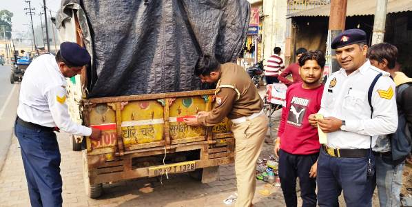 हाथरस 14 दिसंबर । पुलिस अधीक्षक चिरंजीव नाथ सिन्हा के निर्देशन में यातायात और थाना पुलिस ने धुंध के मौसम को देखते हुए ट्रैक्टर ट्रॉली, ट्रक, लोडर और अन्य भारी वाहनों सहित लगभग 250 वाहनों पर रिफ्लेक्टिव टेप लगाया। इस दौरान वाहन चालकों को यातायात नियमों और सड़क सुरक्षा के प्रति जागरूक किया गया। प्रभारी […]