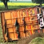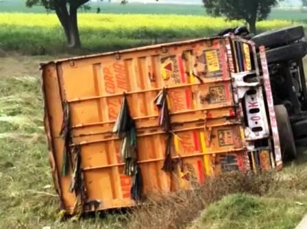 सिकंदराराऊ : चालक को नींद की झपकी आने से खेत में पलटा ट्रक, पुलिस ने मौके पर पहुंचकर संभाली स्थिति, चालक घायल