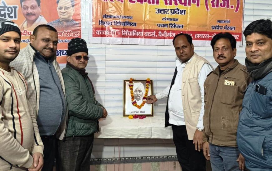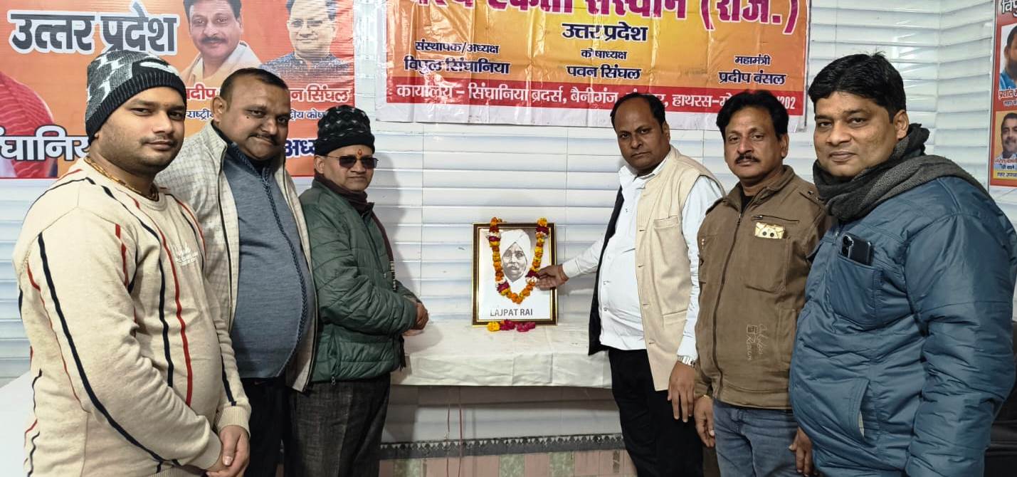 हाथरस 28 जनवरी । आज शहर के बेनीगंज स्थित वैश्य एकता संस्थान उत्तर प्रदेश के कार्यालय में महान स्वतंत्रता सेनानी एवं भारत माता के सपूत पंजाब केसरी लाला लाजपत राय की जयंती श्रद्धा एवं सम्मान के साथ मनाई गई। इस अवसर पर उनकी छवि चित्र पर माल्यार्पण कर वैश्य बंधुओं द्वारा उन्हें नमन किया गया। […]