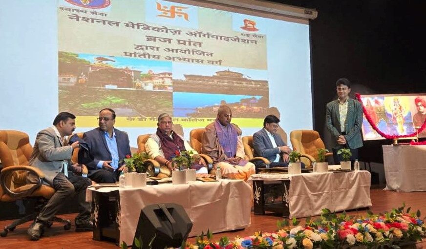 मथुरा 10 दिसंबर । नेशनल मेडिकोज ऑर्गेनाइजेशन (एनएमओ) मथुरा द्वारा के.डी. मेडिकल कॉलेज में आयोजित ब्रज प्रांत के अभ्यास वर्ग में ब्रज प्रांत अध्यक्ष डॉ. प्रशांत गुप्ता के मार्गदर्शन में 15 मेडिकल कॉलेजों के शिक्षकों और छात्र-छात्राओं को राष्ट्र निर्माण और देशभक्ति के लिए प्रेरित किया गया। अभ्यास वर्ग को चार प्रमुख भागों में विभाजित किया […]